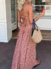 Boho Floral Print Rosette Decor Halter Long Dress